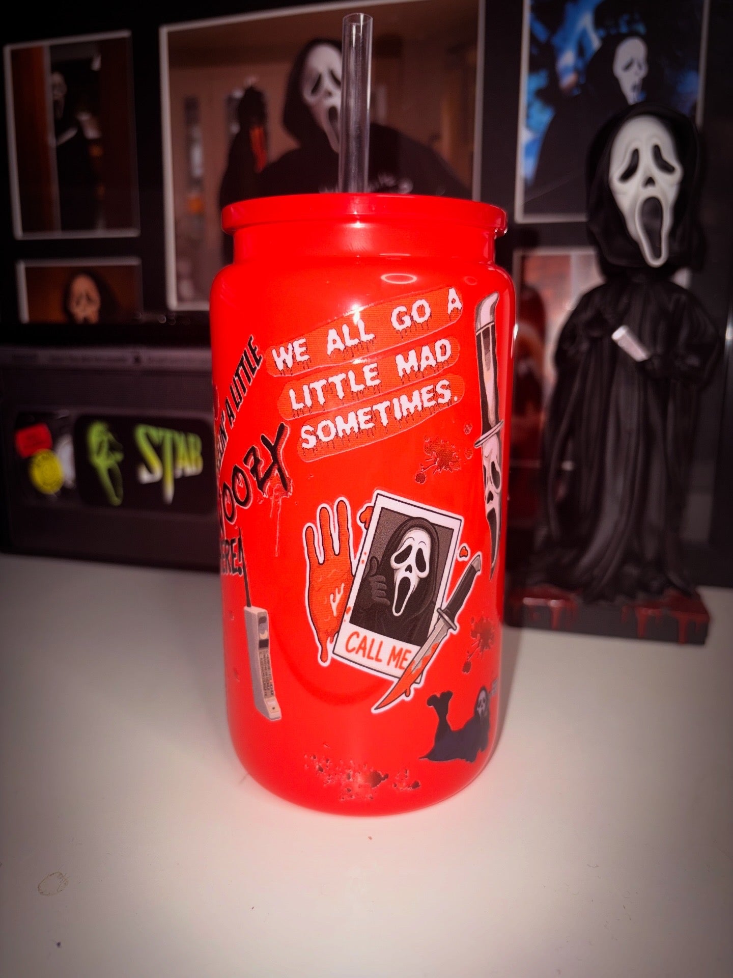 16oz glass cans with decals. Comes with lid and straw. Handwash only. Only suitable for cold drinks. Do not soak. Not dishwasher safe.