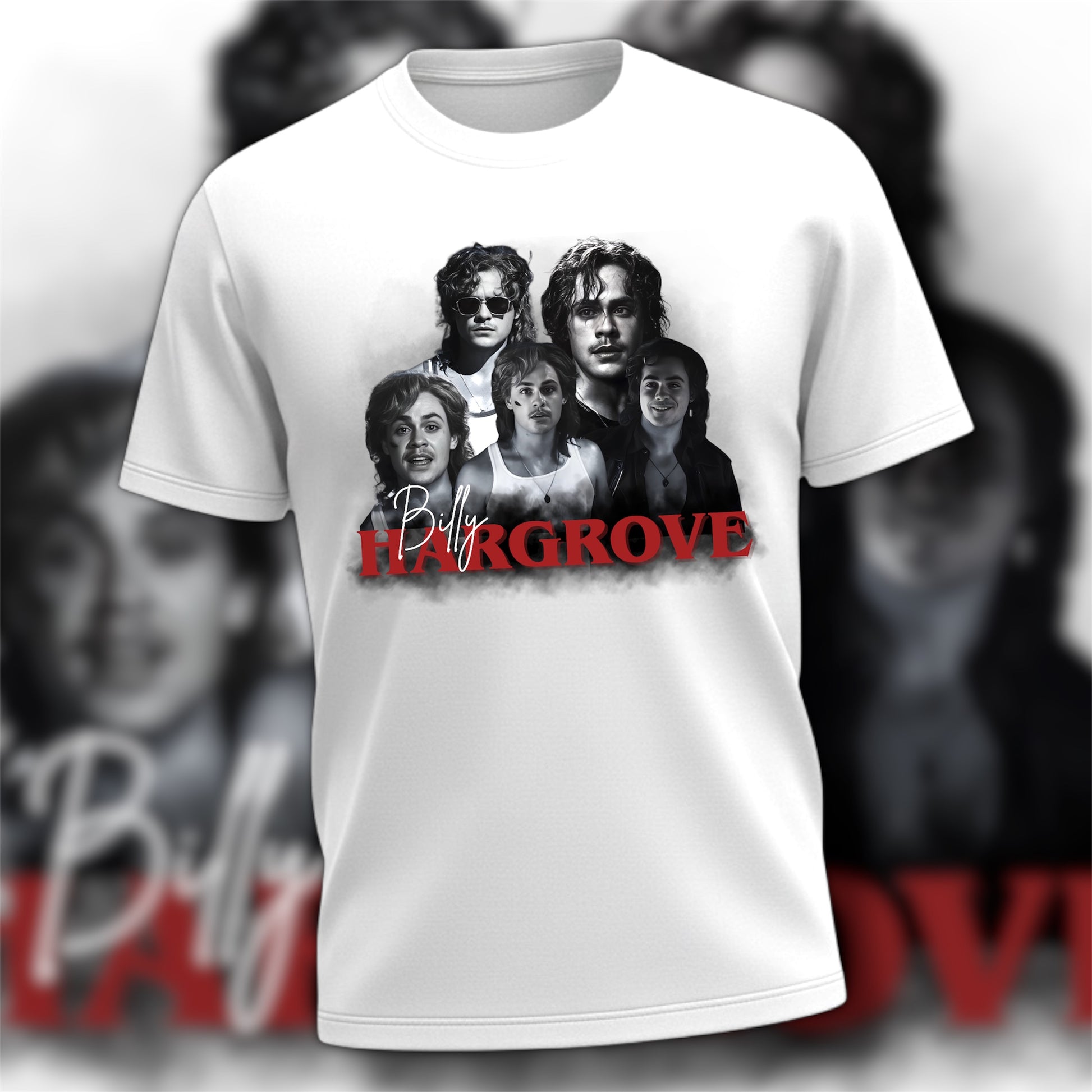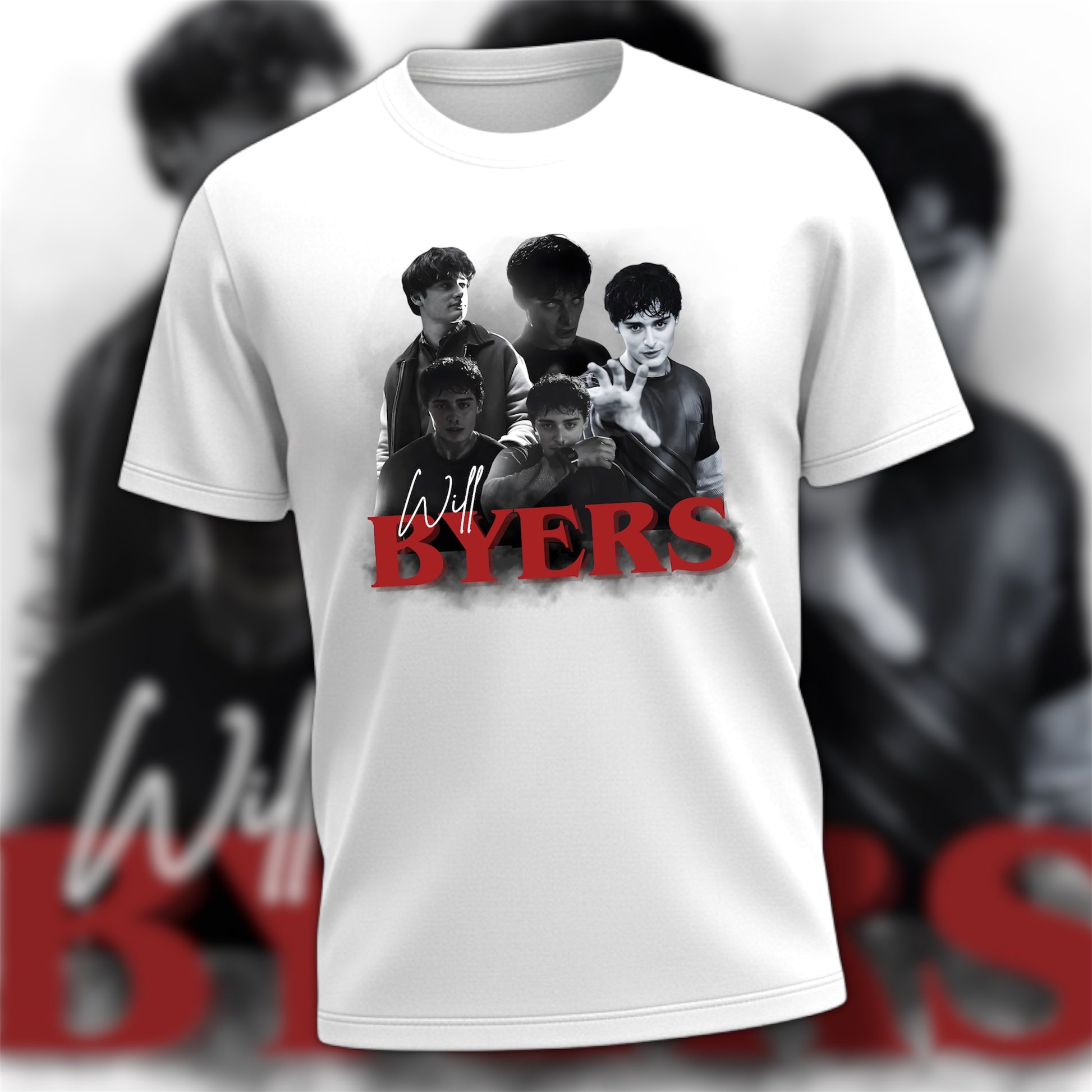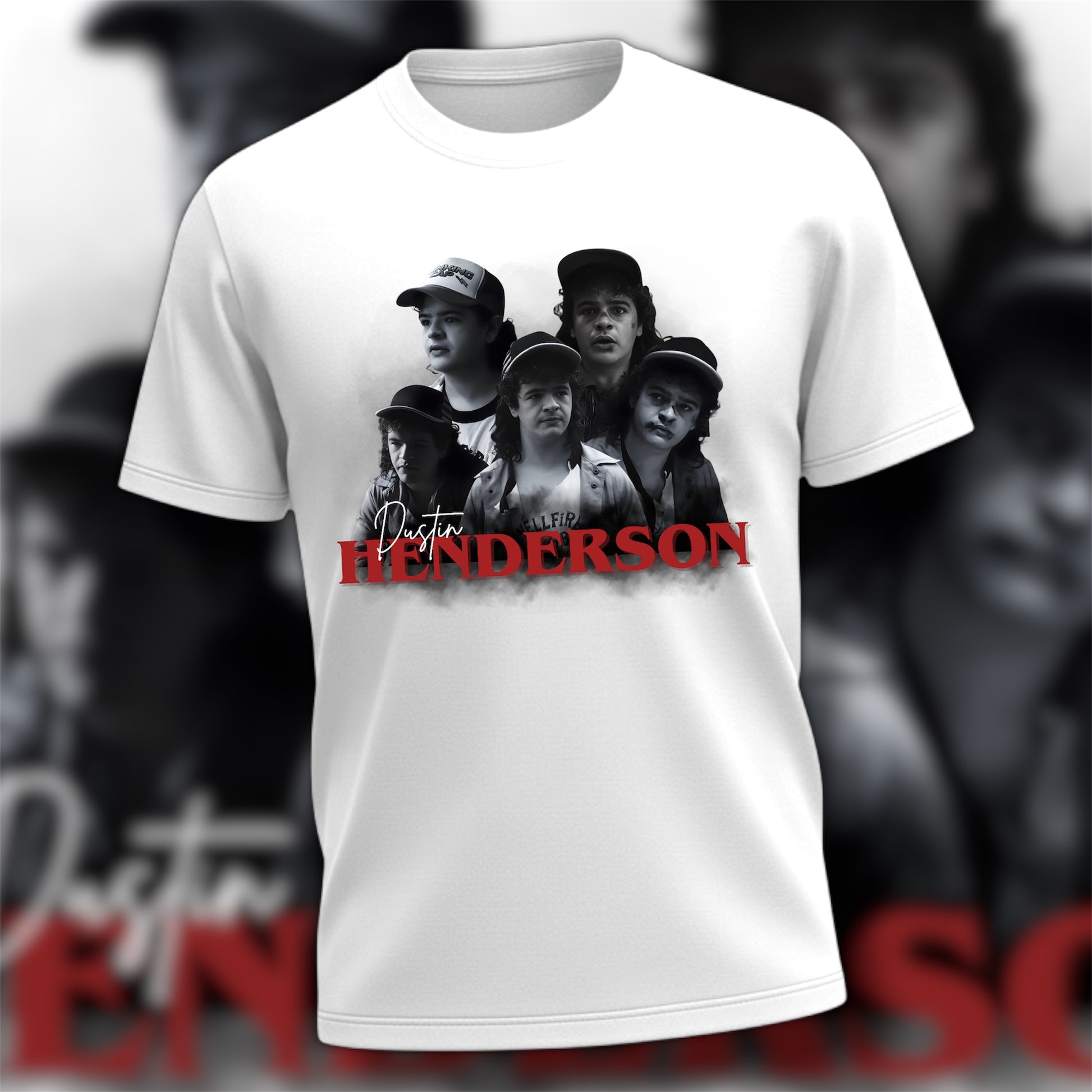 Design is pressed to a white cotton tee.