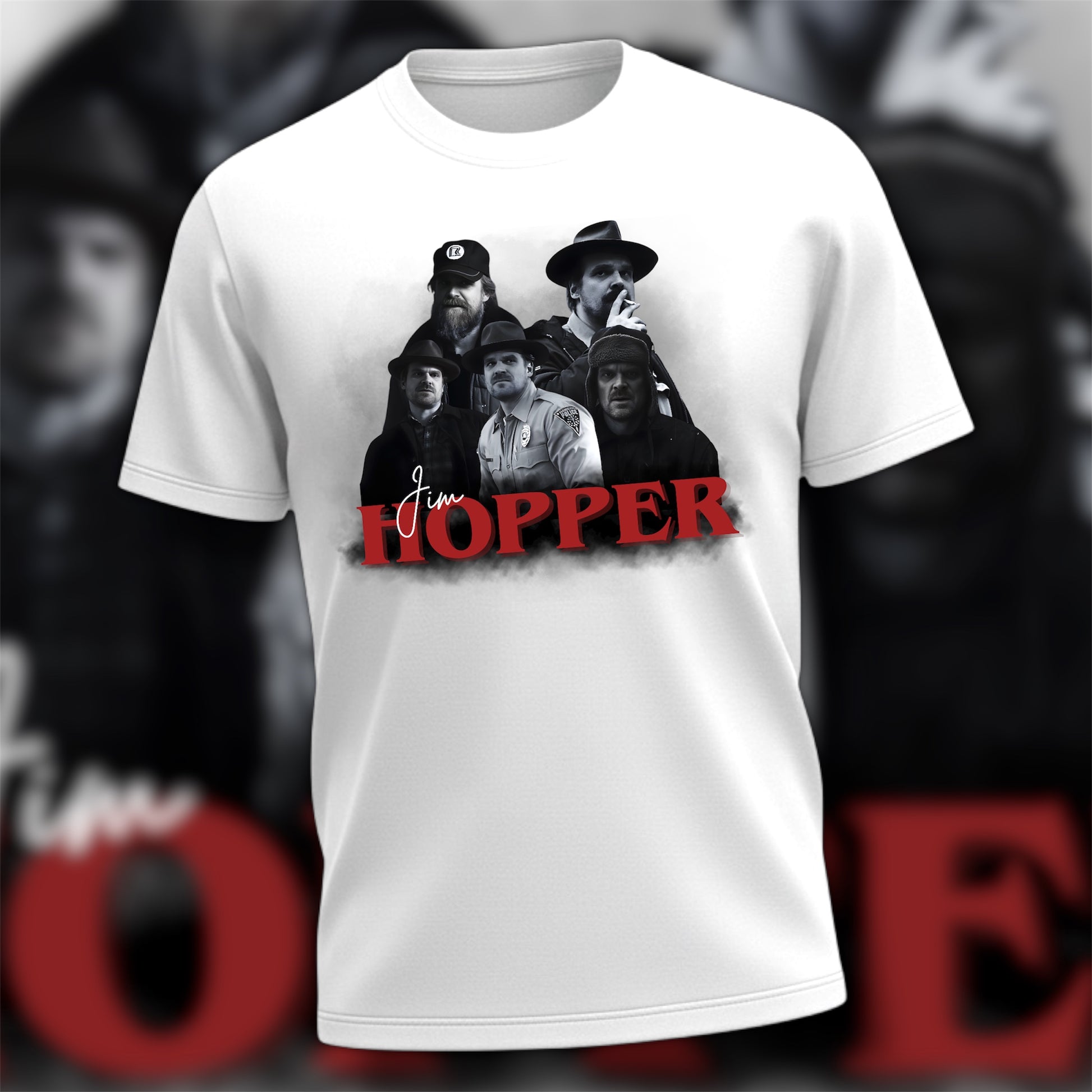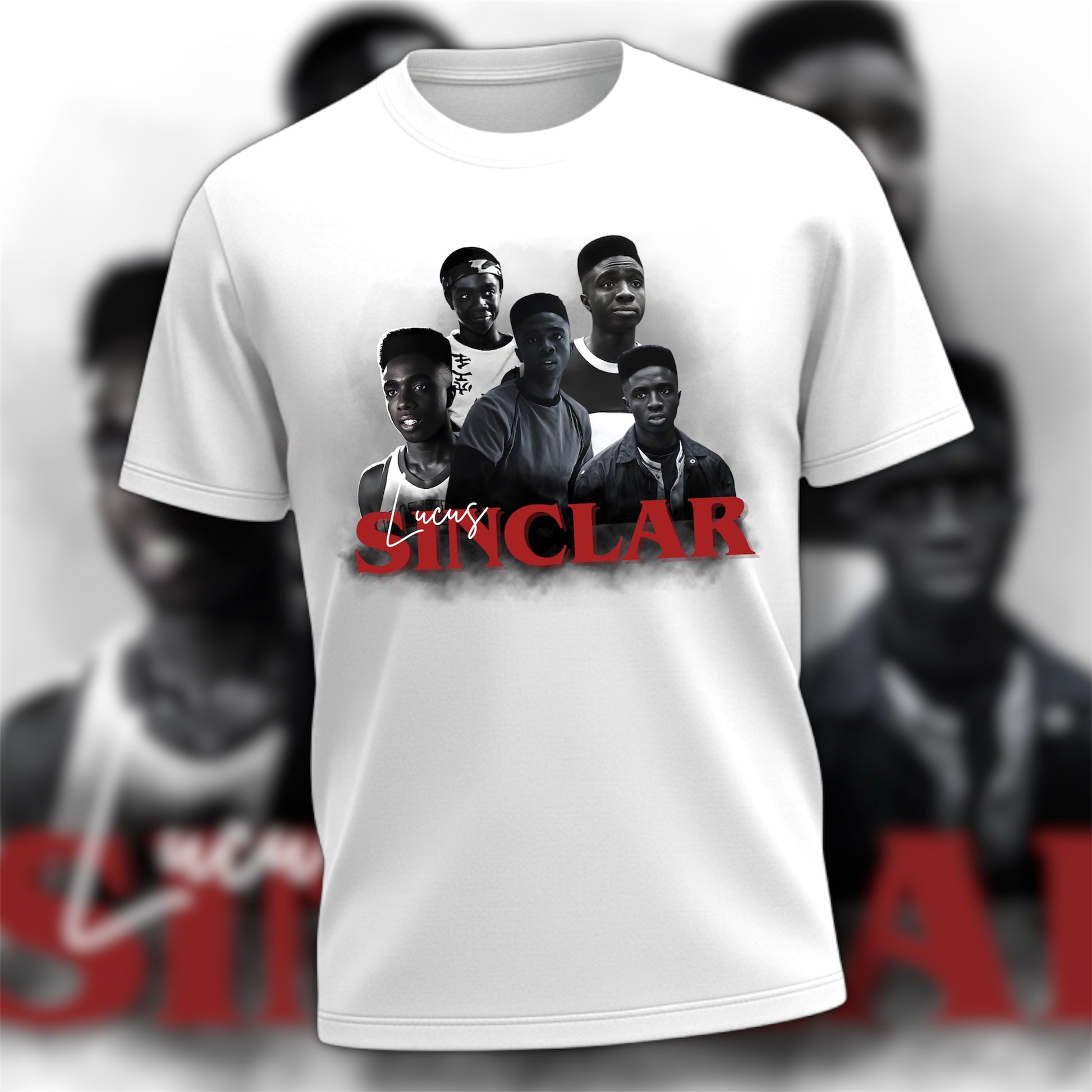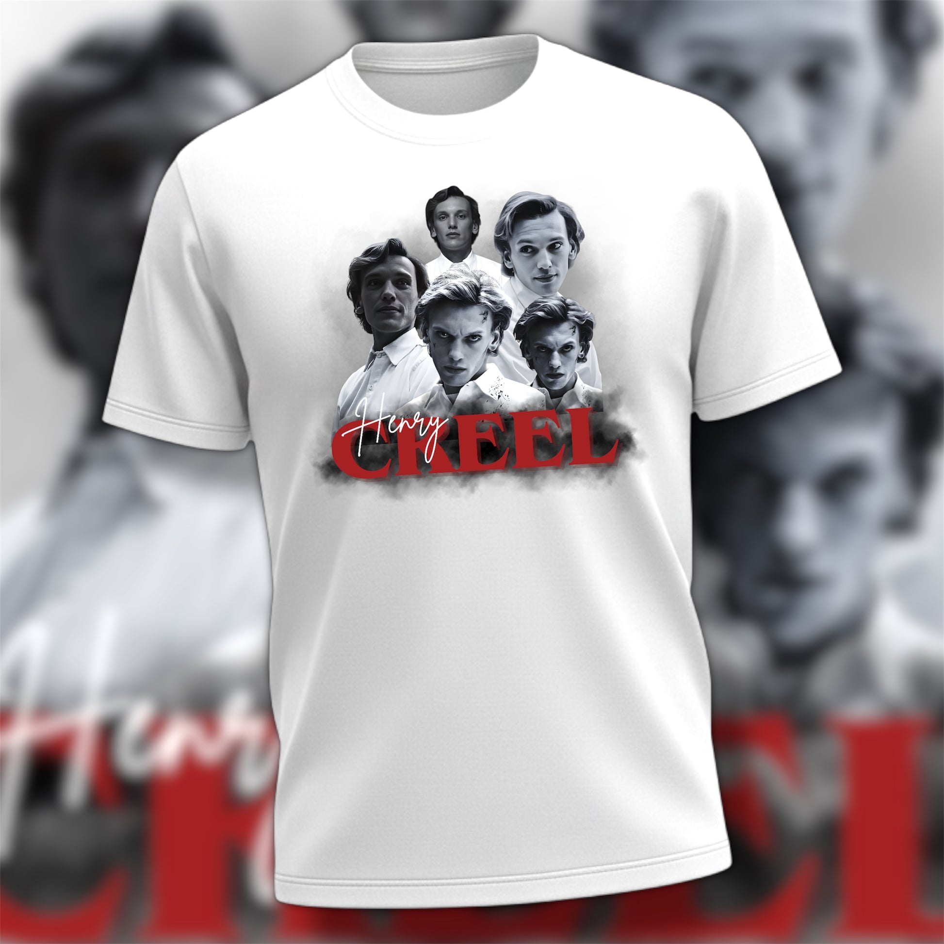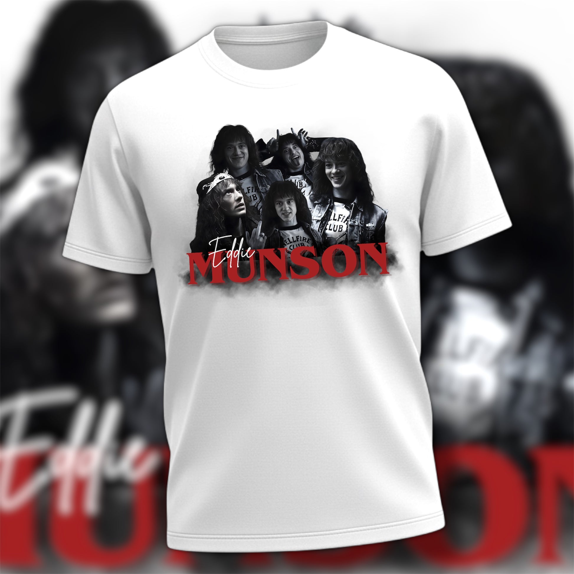 Design is pressed to a white cotton tee.